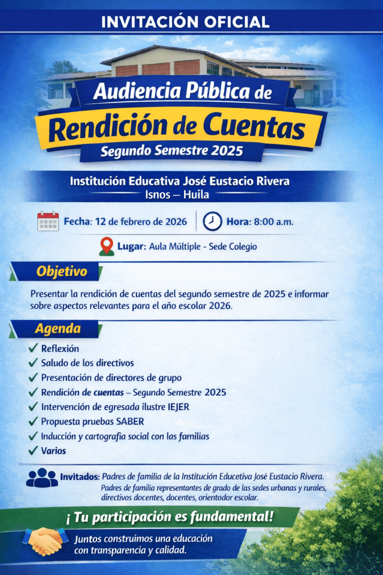La Institución Educativa José Eustacio Rivera invita a los padres de familia, representantes de grado…