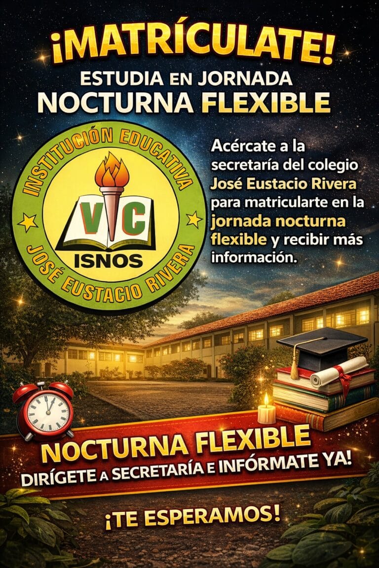 En la I.E. José Eustacio Rivera te ofrecemos unajornada nocturna flexible, ideal para jóvenes y…